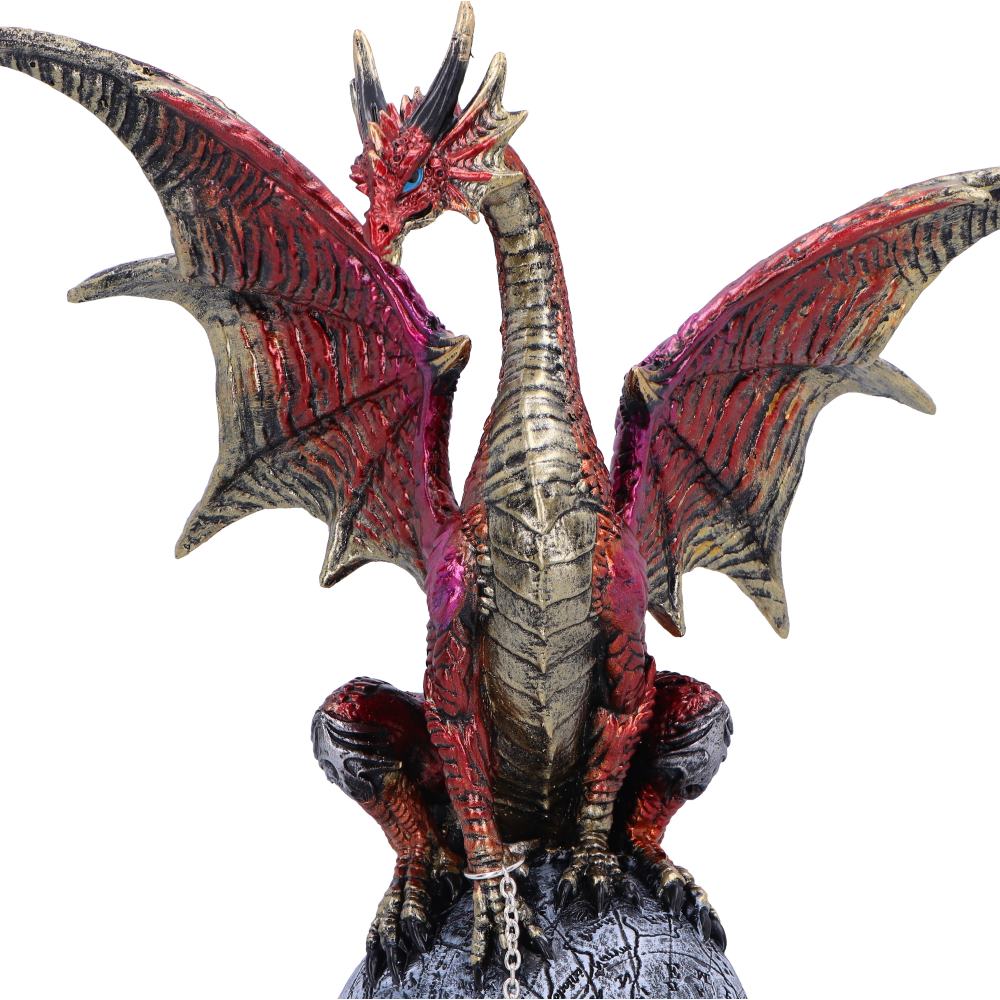 Behold the enchanting allure of our Fate of the World figurine from Nemesis Now's value collection, a mesmerizing creation that brings together the mystique of magical creatures and the allure of medieval mythos. This glimmering red dragonling, adorned with gold accents, perches majestically atop the skull of a fallen man. A silver pentacle is delicately chained around the dragon's claw, adding a touch of mystical symbolism to this captivating piece. Crafted from the finest resin and meticulously hand-painted, this figurine exudes a magical charm that appeals to those who appreciate the fantastical world of dragons and mythical tales. Explore our diverse range of dragon-themed giftware, where each piece captures the essence of magical creatures and medieval enchantment, making it the perfect addition for those who seek the extraordinary.