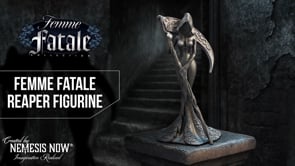 The Femme Fatale Scythe Figurine from Nemesis Now is a striking gothic collectible, depicting a mysterious hooded woman gripping a silver-accented scythe. Faceless and shrouded in matte black robes, this original design exudes dark elegance and quiet power. Cast in high-quality resin with fine sculpted detail, its both haunting and beautiful. Packaged in a full colour branded box, its perfect for gifting or displaying straight out of the box. Ideal for fans of gothic decor, fantasy art, and dark feminine symbolism, this figurine adds a bold, atmospheric touch to any space. A must-have statement piece for lovers of the mysterious and macabre.