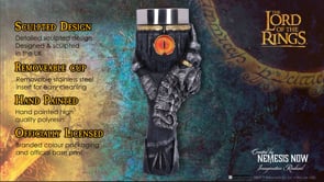 Embrace the dark allure of Middle-earth with our Sauron Gauntlet Goblet, where the stem is intricately crafted to resemble the armored gauntlet hand of Sauron himself. Grasping the cup, his hand is adorned with The One Ring, prominently placed on his index finger. The goblet features the all-seeing eye of Sauron on one side and his angular helmet on the reverse. Around the brim, the inscription on the One Ring, translating to 'One Ring to Rule Them All,' adds an ominous touch. This exquisitely designed piece, cast in the finest 'Elvish' resin and expertly hand-painted, is a testament to the dark power of Sauron. Immerse yourself in the captivating world of Middle-earth with this stunning goblet that captures the essence of the Dark Lord's malevolence.